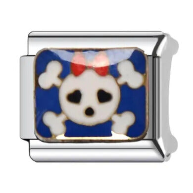 Añade un toque divertido y único a tu pulsera italiana con este eslabón con la imagen de una calavera niña. Crea un estilo personalizado y muestra tu amor por la cultura mexicana. Hecho con materiales de alta calidad para una apariencia duradera y hermosa. Disfruta de esta pieza llamativa y original en tu colección de joyería.