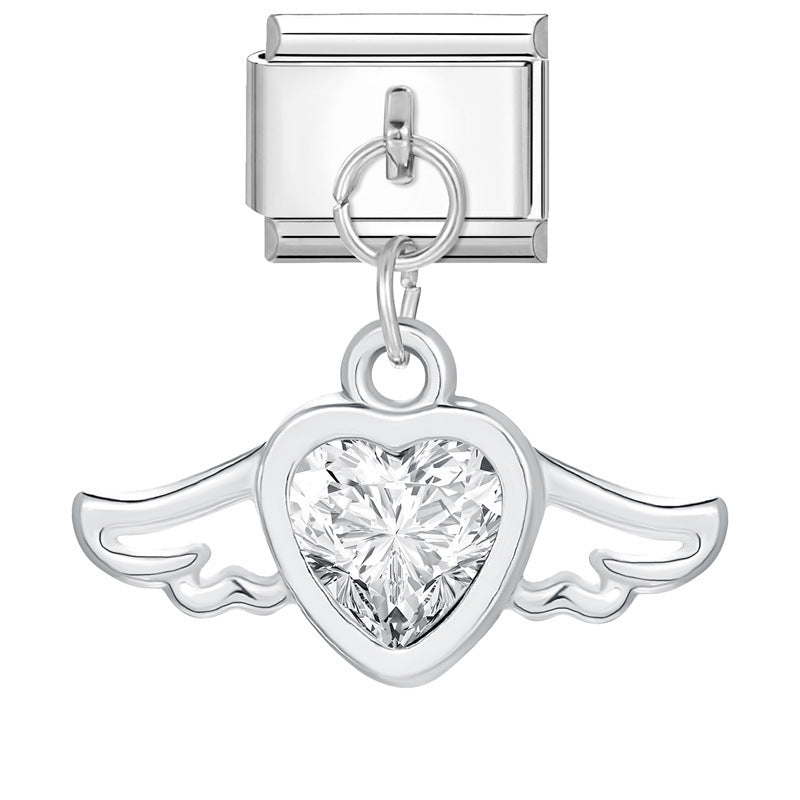 Eslabón Corazón Blanco con Alas Colgante