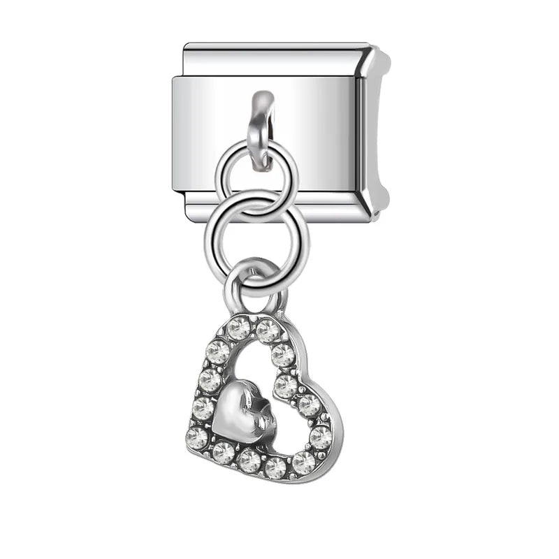¡Añade un toque amoroso a tu pulsera italiana con este eslabón corazón! Cuenta con brillantes y un pequeño corazón en su interior. Haz que tu joyería refleje tu amor y estilo con este eslabón. Perfecto para cualquier ocasión.