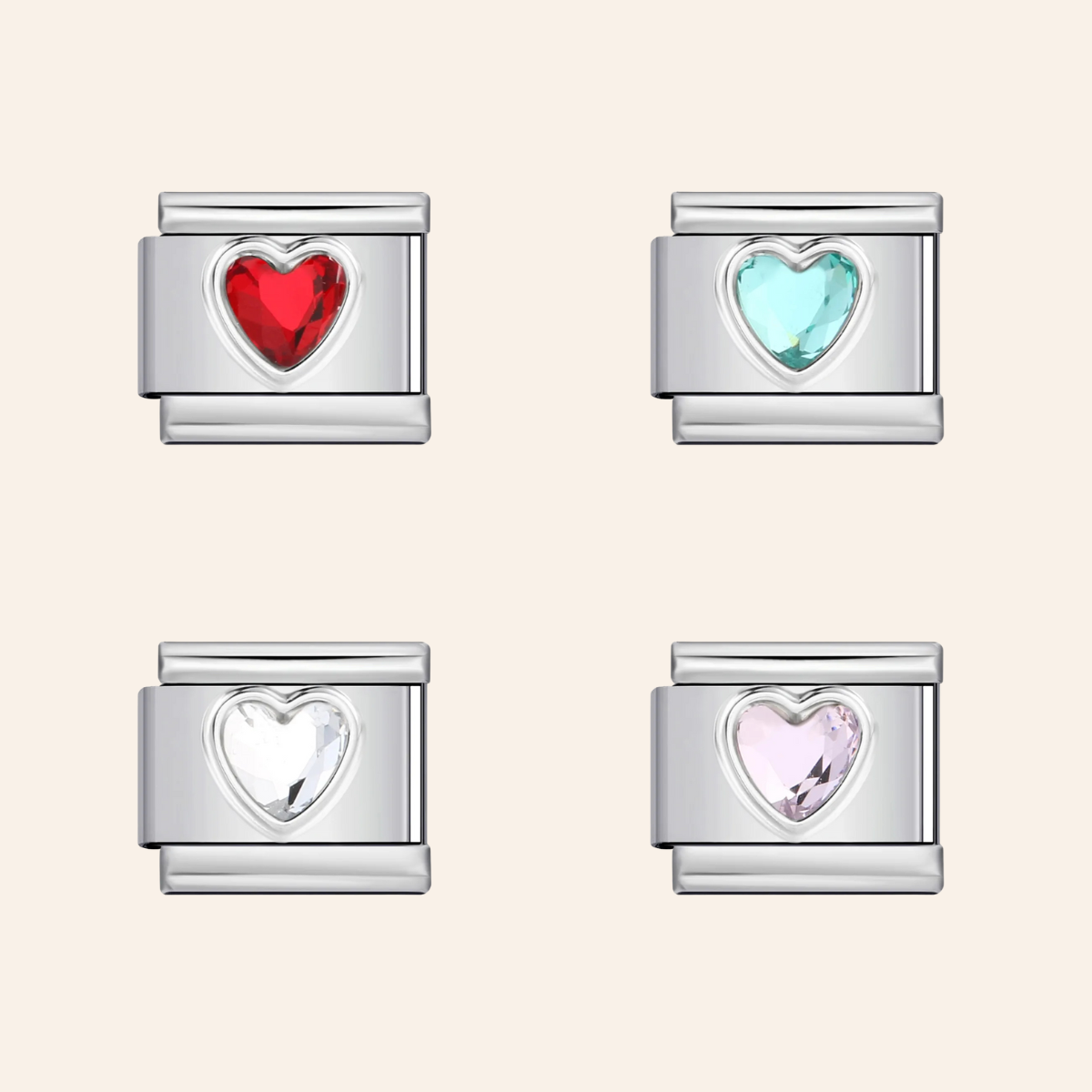 ¿Mood romántica, misteriosa o full vibes? Estos charms de corazón con efecto joya son el toque brillante que tu pulsera italiana necesita. Vienen en 4 colores para que elijas (o combines) según tu energía del día.