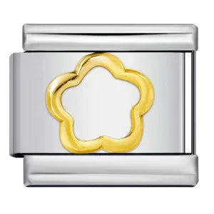¡Realza tu estilo con este hermoso eslabón para pulsera italiana con una delicada silueta de flor en color dorado!