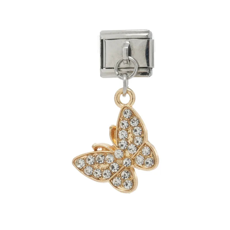 Este exquisito colgante de mariposa en un eslabón para pulsera italiana es una verdadera joya de la naturaleza. Su diseño elegante y exclusivo presenta brillantes, creando un verdadero sentido de belleza y estilo. El complemento perfecto para cualquier look lujoso.