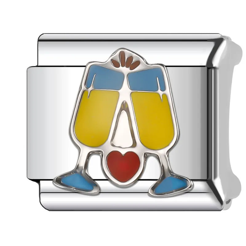 🎉 Cheers con estilo. Dos copas chocando y un corazoncito entre ellas. Este eslabón es para celebrar las brunch vibes, los reencuentros y la buena vida.