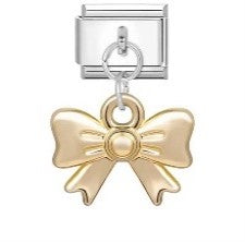 ¡Agrega un toque de ternura a tu pulsera italiana con nuestro eslabón de lazo colgante! Diseñado con un lazo dorado, este eslabón es perfecto para expresar tu lado más dulce. Dale un nuevo estilo a tu pulsera y haz que cada día sea más tierno.