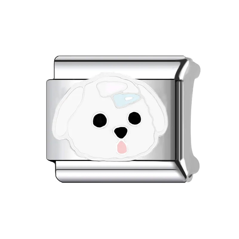 Un tierno perrito blanco con detalles adorables. Perfecto para las amantes de las mascotas y del estilo Barbie más cute.