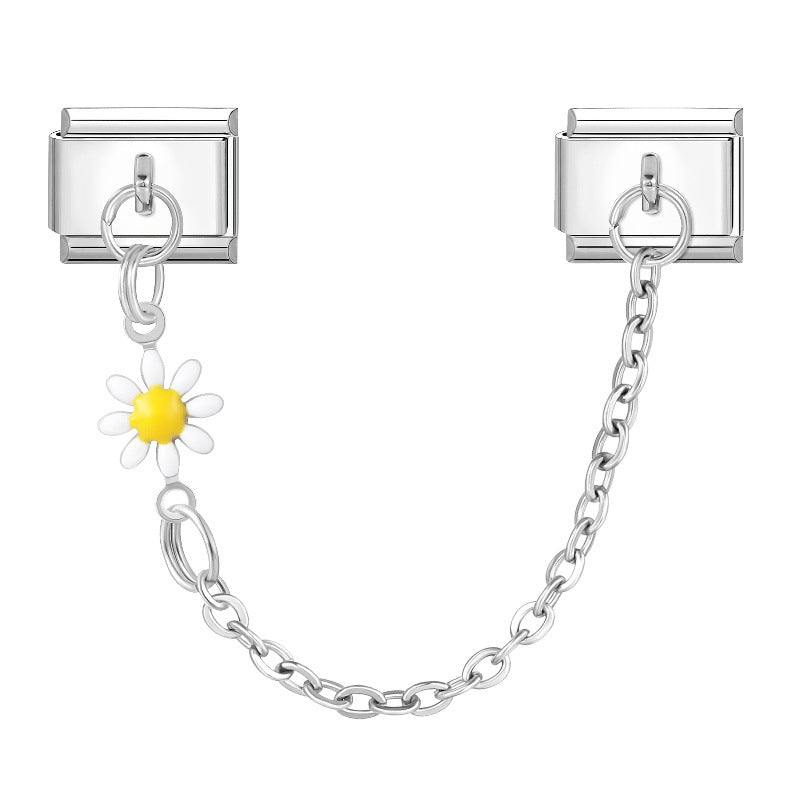 Tan fresco como un día de primavera. Este eslabón con cadena y margarita amarilla te conecta con tu lado más natural y alegre.