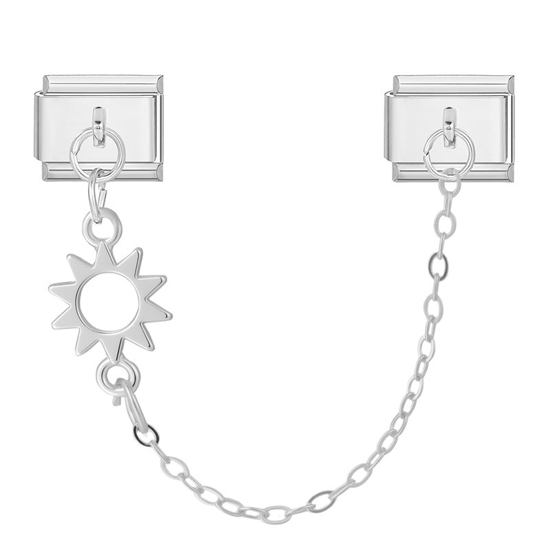 ¡Luz propia siempre! Este puente con cadena incluye una silueta de sol que te recuerda que cada día es una nueva oportunidad para brillar.