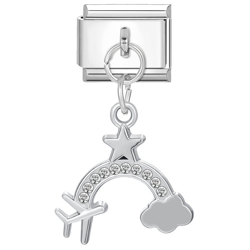 Para espíritus viajeros y corazones libres. Este charm con avión, estrella y nube en tonos plateados y brillantes es perfecto para quienes siempre tienen la mente en su próximo destino.
